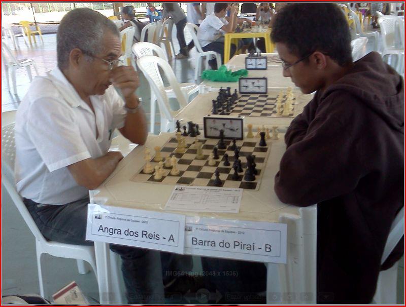 Nessa mesma rodada e na primeira mesa Carlos Gustavo nosso melhor atleta,apesar de dominar maior parte da partida contra Luiz Fernando da Gloria, perdeu após um sacrifício lindo de um bispo ,para mim um dos lances mais bonitos do torneio. Luiz Fernando da Gloria se tornaria campeão absoluto da categoria, mas não antes de ter sua única derrota, para Rodrigo Gomes,estreante em torneios estaduais que com 3 dos 5 possíveis obteve o quinto lugar absoluto e o segundo lugar na categoria sub 20.O domingo não foi muito bom para Carlos Gustavo que não deve ter conseguido aumentar seu rating FEXERJ como pretendiamas levou o troféu de terceiro na categoria sub 20.